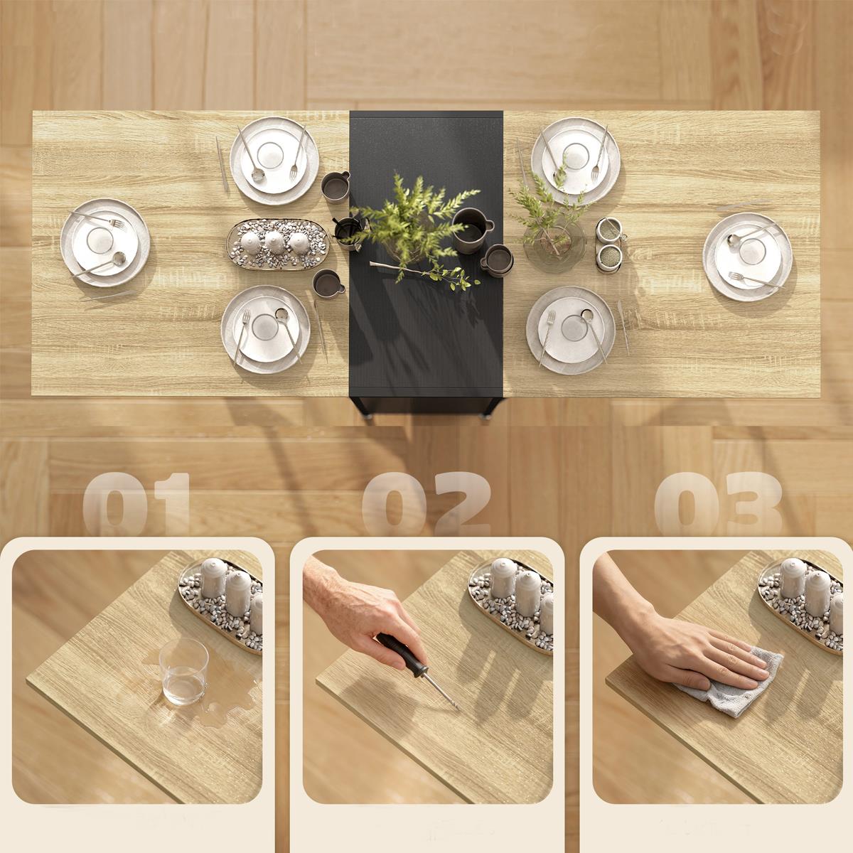 Sa vaste surface de travail se distingue par une finition effet bois naturel de haute qualité, qui allie esthétique et praticité. Sa surface lisse facilite l’entretien au quotidien : un simple coup de chiffon suffit, et elle résiste parfaitement à une utilisation régulière.