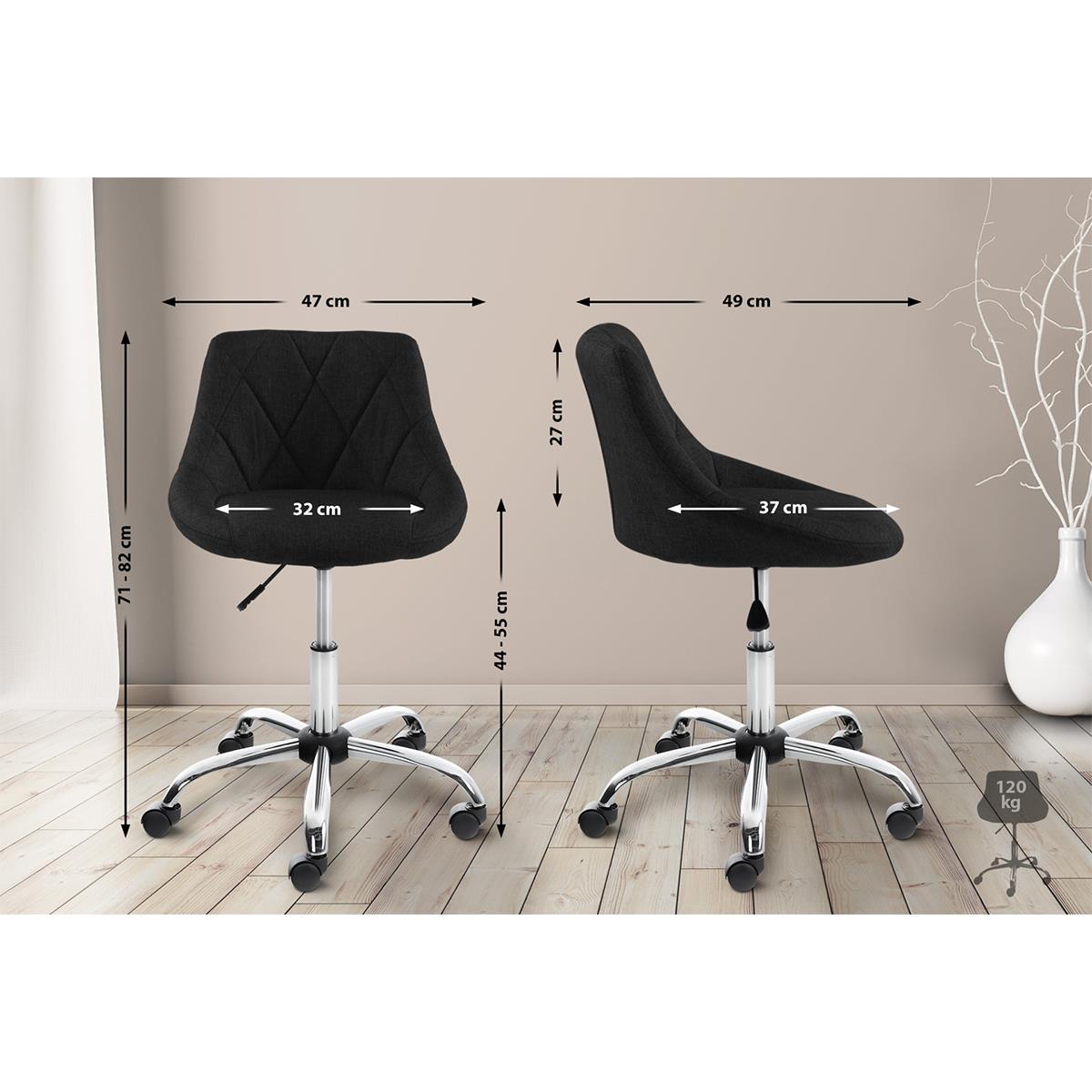 Tabouret de Travail DOVER TISSU, Rembourrage Épais, Design élégant, Noir