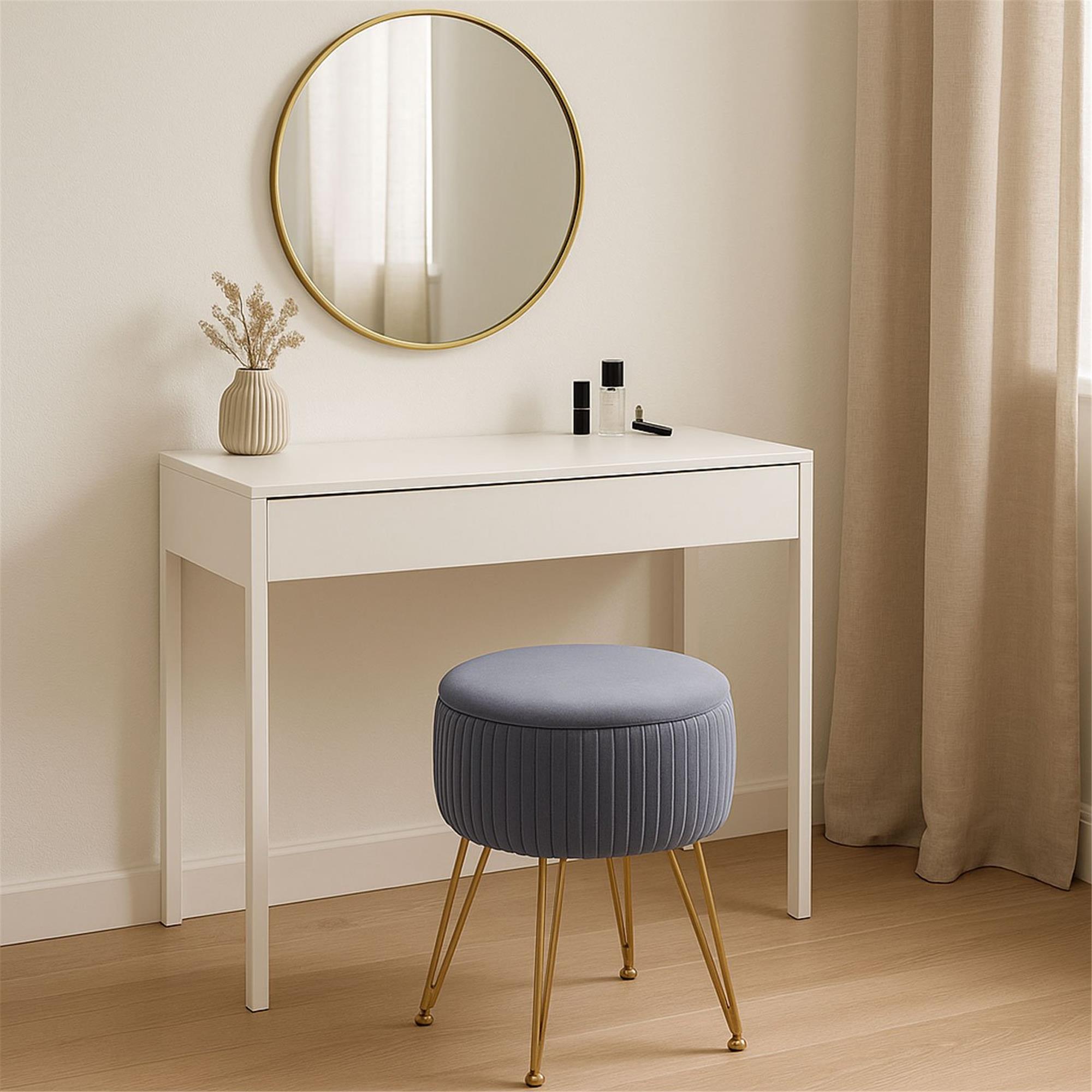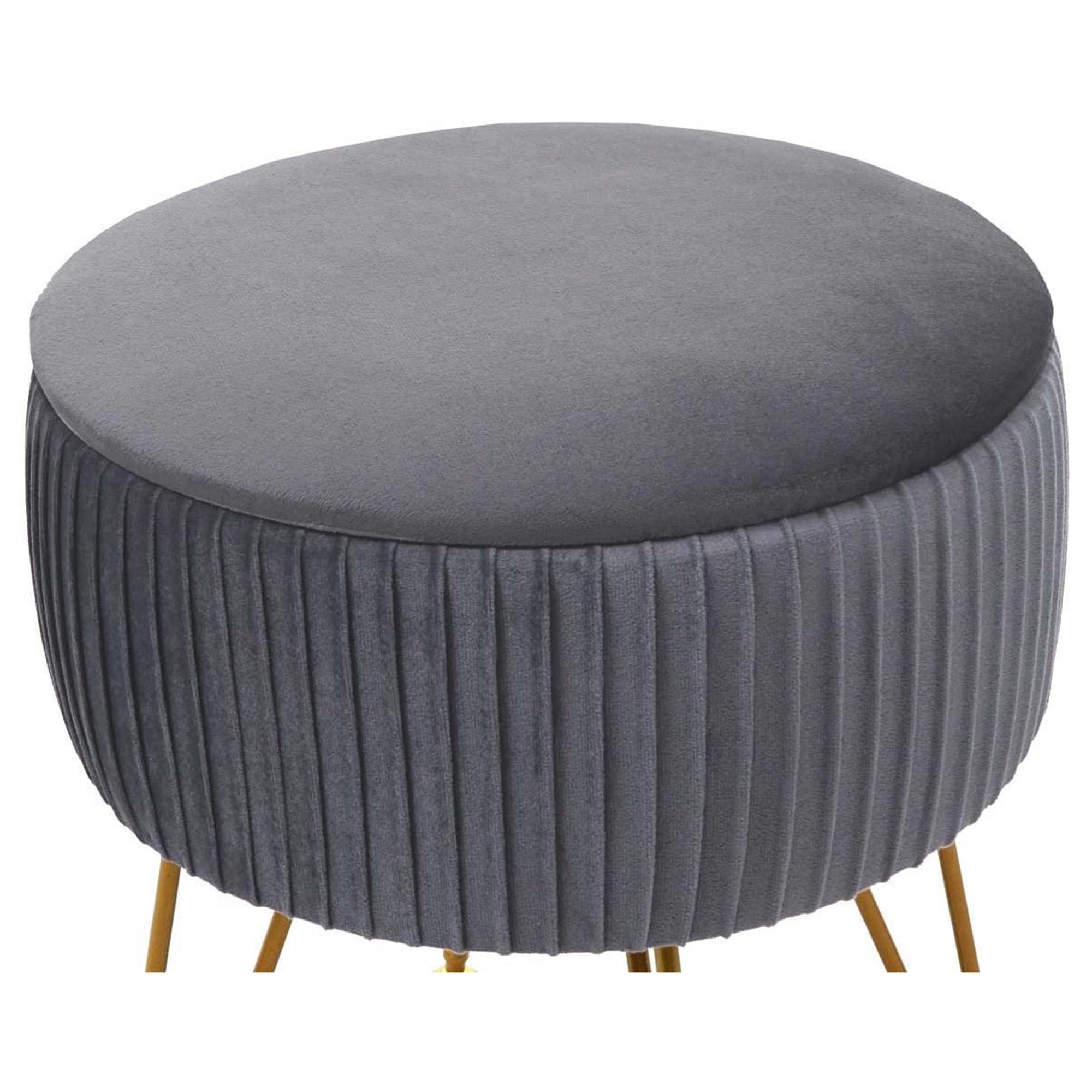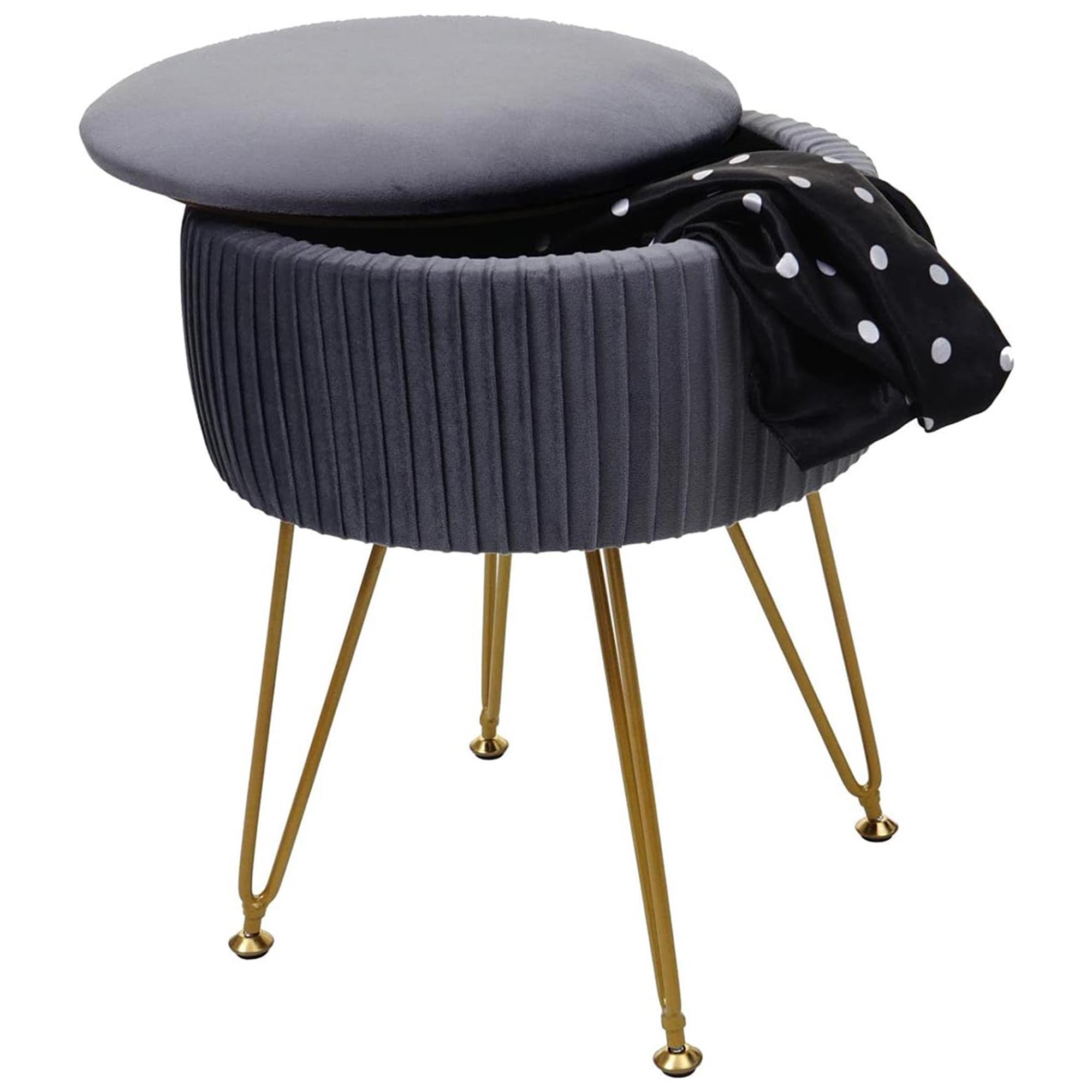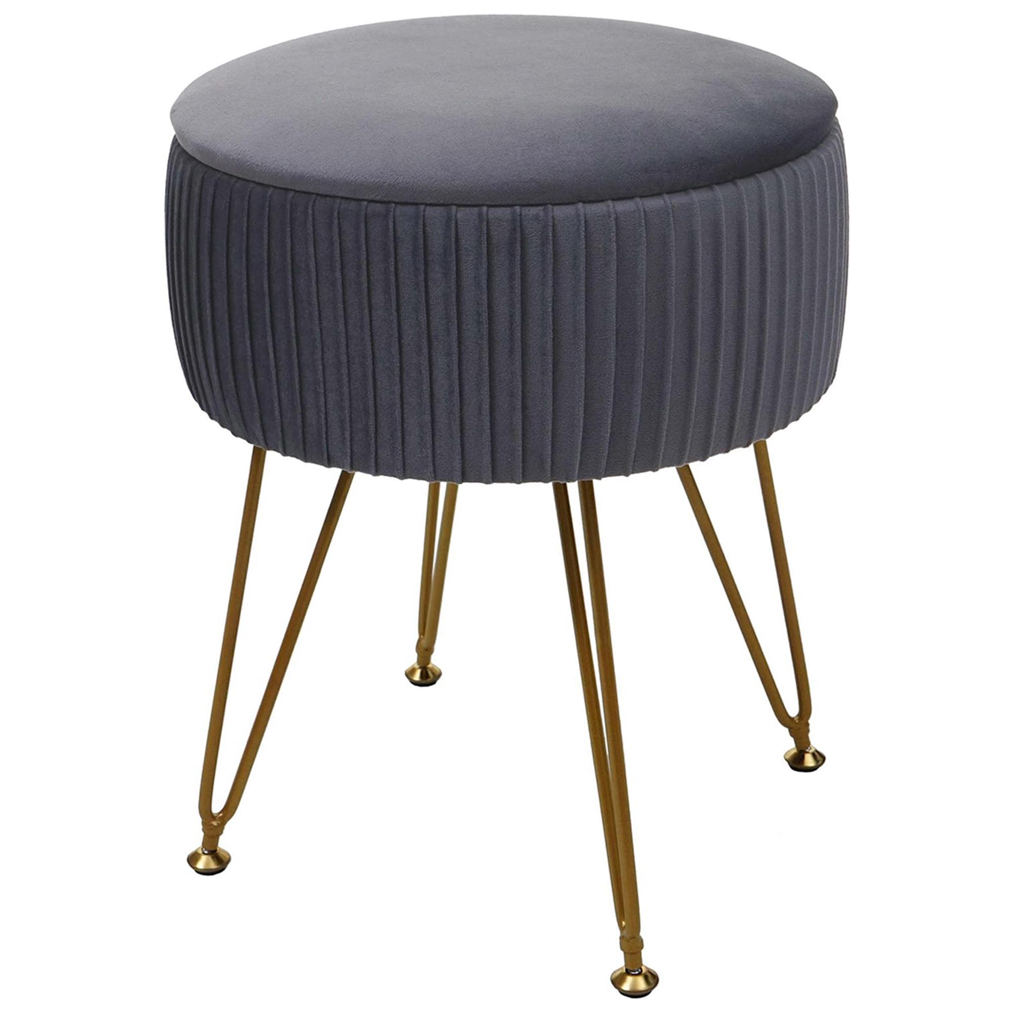 Tabouret MEKO, Compartiment de Rangement, Pieds Dorés, En Tissu Gris