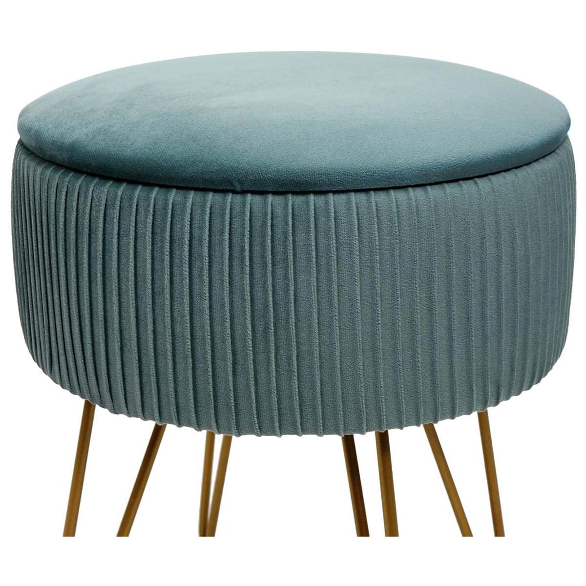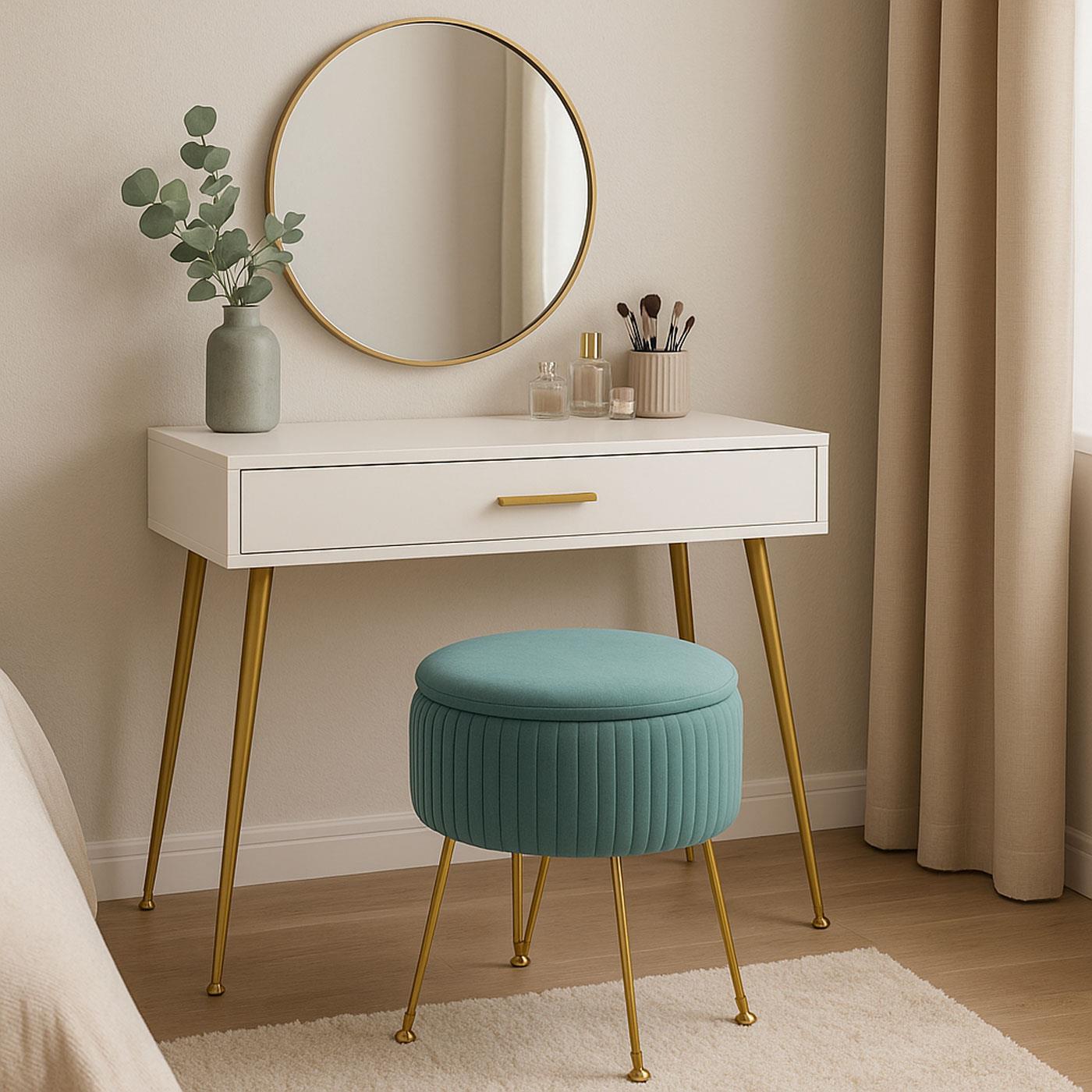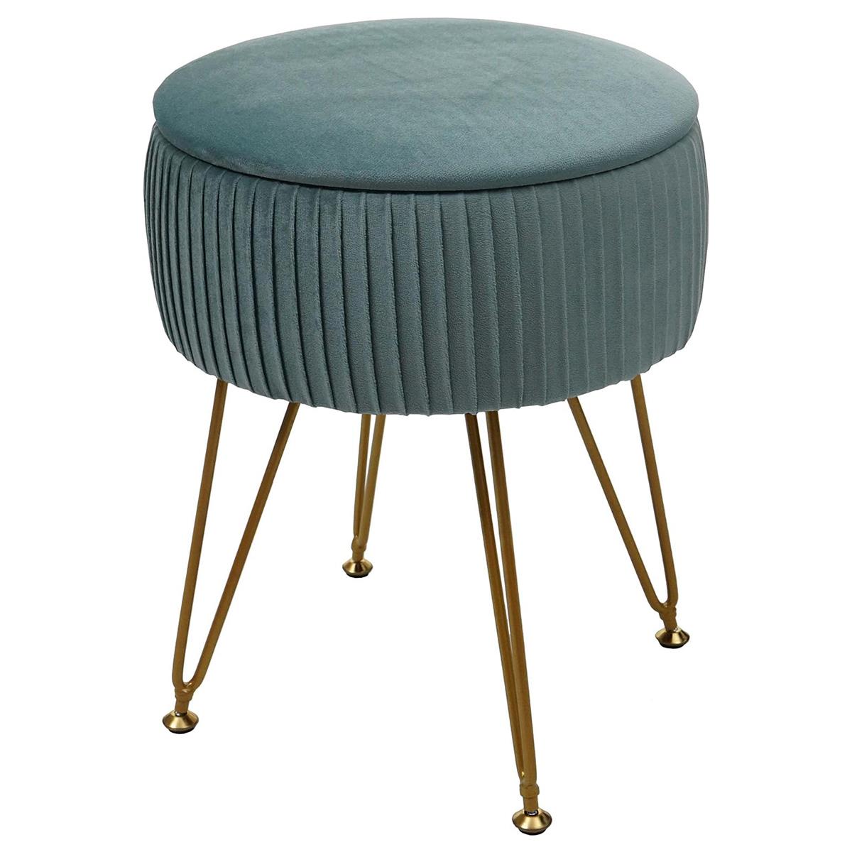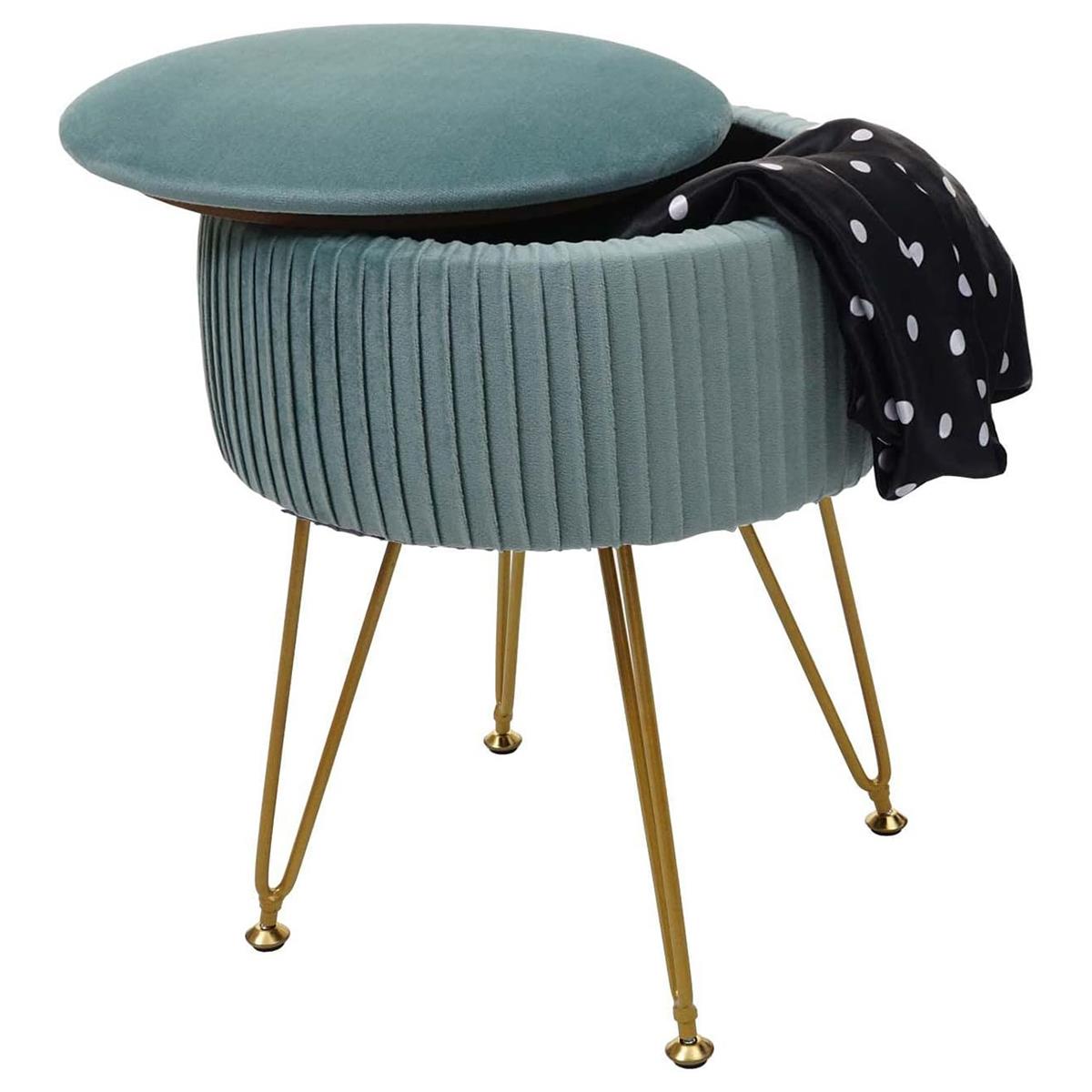 Tabouret MEKO, Compartiment de Rangement, Pieds Dorés, En Tissu Vert